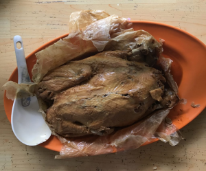 Beggar Chicken is essentially a dish that is prepared by marinating a raw chicken and burying it under layers of soil and hot charcoal to cook. It takes about 24